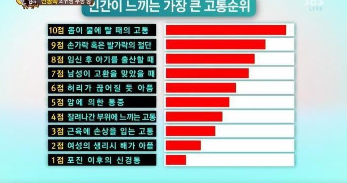 인간이 느끼는 가장 큰 고통순위